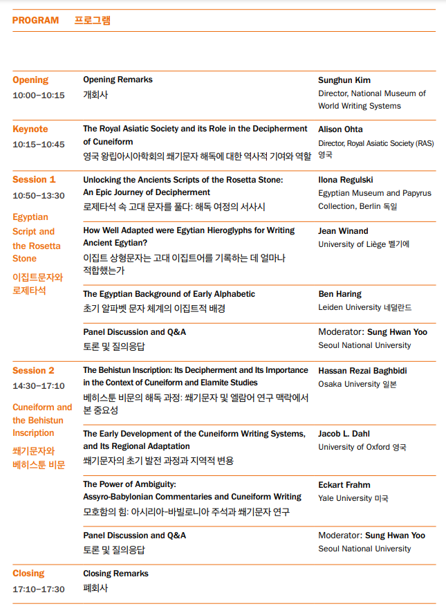 더불어 고대 문자가 이후 알파벳 문자 발달에 미친 영향과 문자와 언어가 인류 역사에 남긴 발자취를 짚어 보는 뜻깊은 시간을 갖고자 합니다.